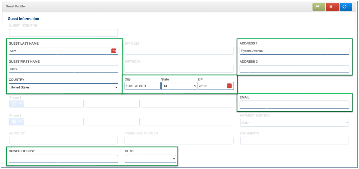 All information highlighted in green will be automatically populated and included in the reservation when the profile is selected.