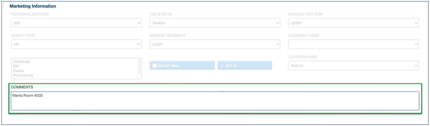 It's important to remember that any comments entered here will appear in the guest profile under the 'Internal Comments' section. However, only additions made directly within the guest profile will be saved. Comments added through the reservation will not be included in the guest profile comments.