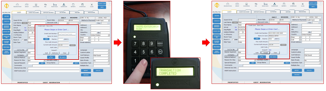3- Swipe or enter manally the guest's credit card with the expiration date
