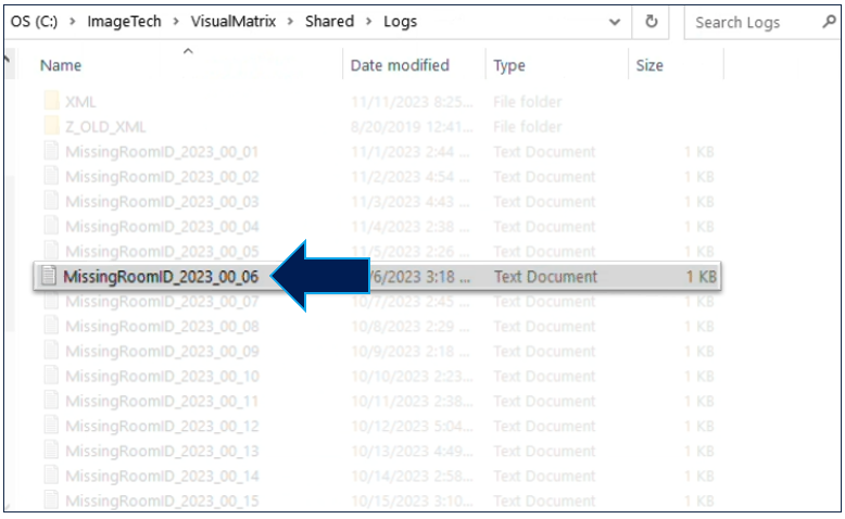 1. Go to the folder location and look for a file named "MissingRoomId_XXXX_XX_XX".