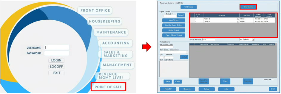 1. Click on the Restaurant type Revenue Center to see any open Location (Table).
