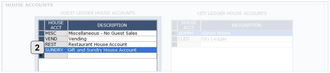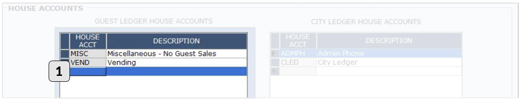Path: Management > Setup > Rooms > House Accounts.