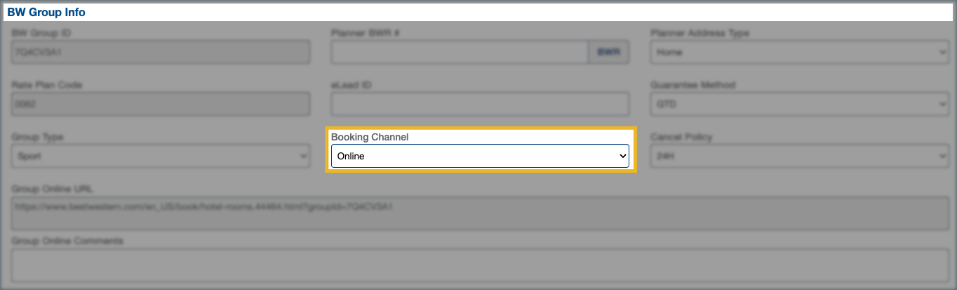 - Can you provide a screenshot of the group record (Booking Channel, allocations)?