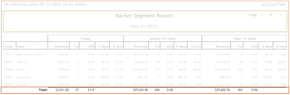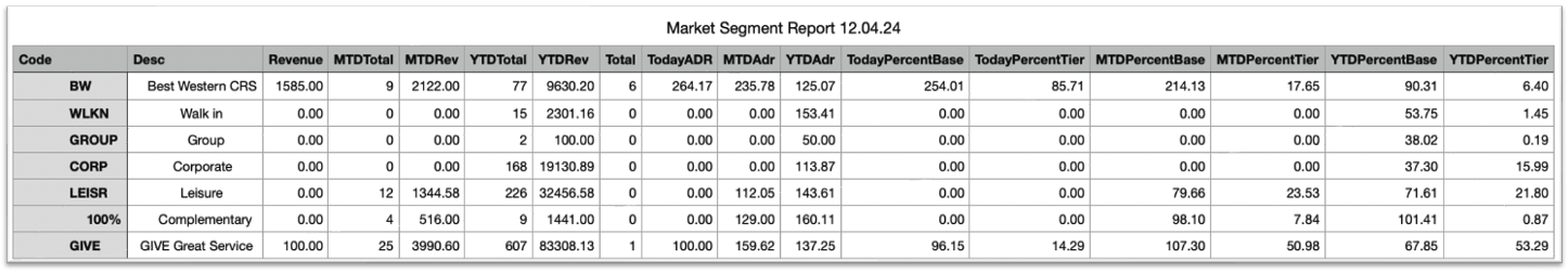 ? Watch Video The Referral Method report show the total revenue for each Referral Method Segment for the day, the month, and the year. Path: Accounting > Night Audit > Reprint Reports > Referral Method Generate report 1. Check the box if you choose ...