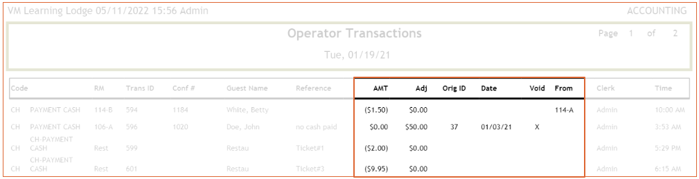 - if it is a void or adjusted transaction, it will show the reason for the void or the adjustment.