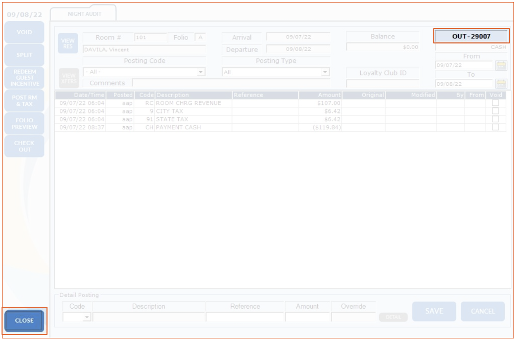 - post a payment and check out the room.