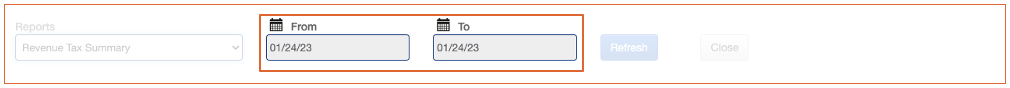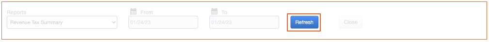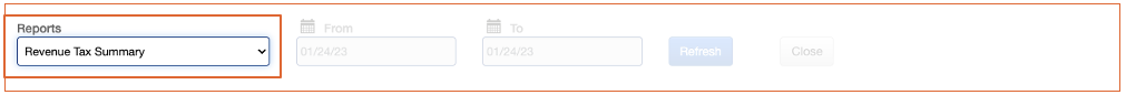 1. Choose "Revenue Tax Summary" in the Reports dropdown.