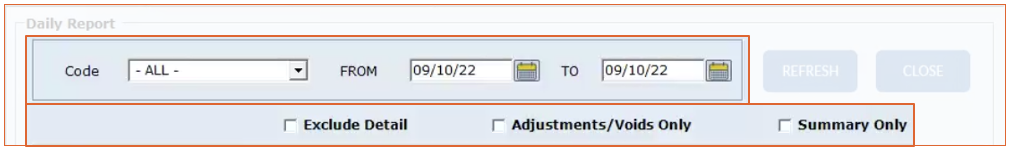 The (Daily) Transaction Log report shows all accounting codes posted for the given date or date range.