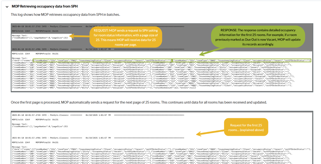 How does MOP know which rooms need cleaning when using SynXis Property Hub? MOP regularly pulls information from SPH about vacant dirty rooms and in-house reservations. This helps generate cleaning tasks based on the room's current status, such as ...