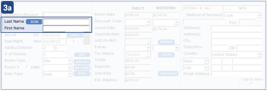 3a- If the Group Guarantee Type is "None" (each room is paying its own bill), the last and first name fields will be empty and will have to be completed before saving.