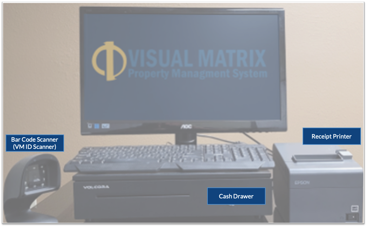 Each 'POS Station' necessitates a computer with Visual Matrix installed. Besides this, there is no mandatory additional hardware. The choice to procure extra hardware is contingent on individual hotel requirements. Visual Matrix offers the Barcode/ID Scanner for direct purchase, but for other hardware, there are no designated preferred vendors.