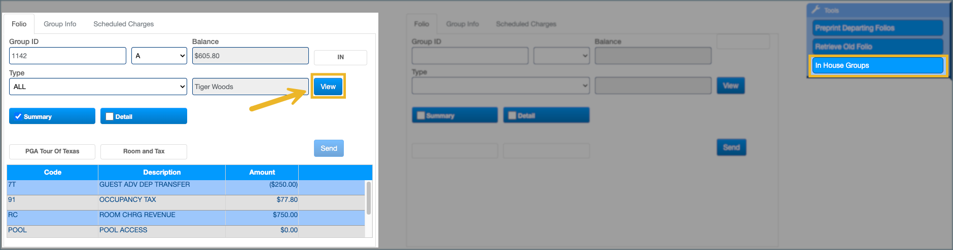 1. In the Toolbox on the right, select In-House Groups to display current group folios.