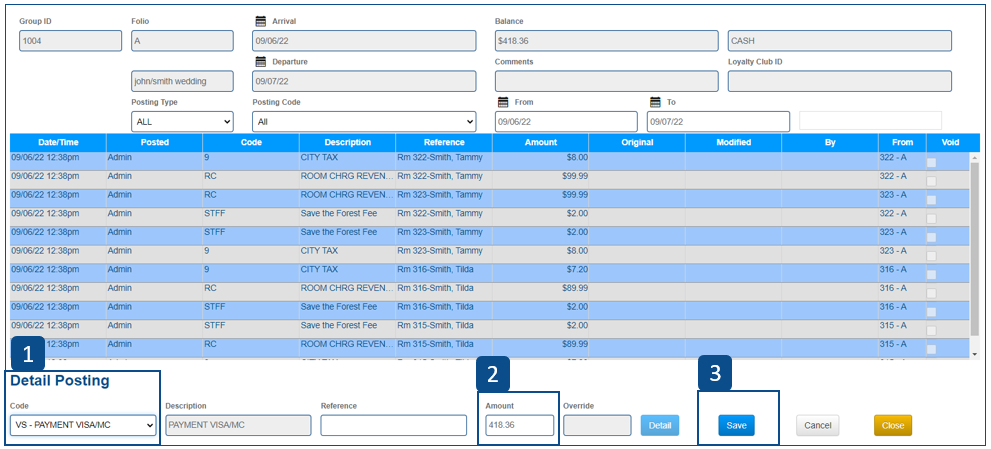 When a charge has been posted to a Group Master Folio that actually belongs to an individual guest, it can be transferred to the guest’s folio without needing to repost it manually. This process ensures that each guest’s folio reflects the correct ...
