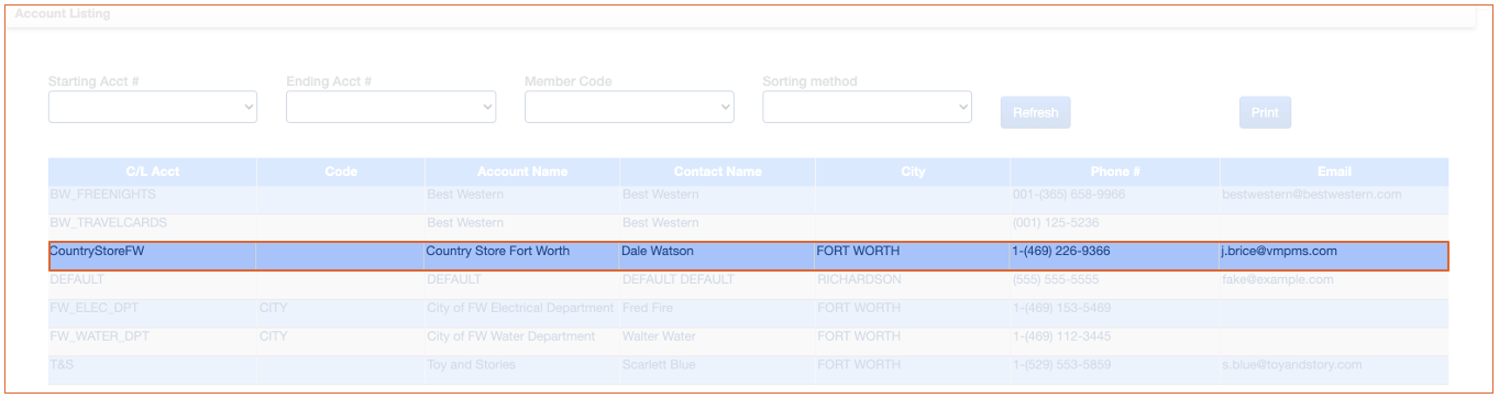 Path: Accounting > City Ledger > Account Listing