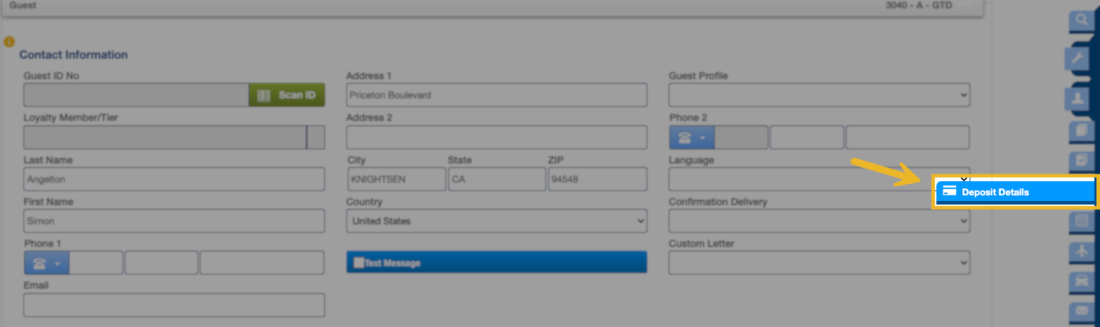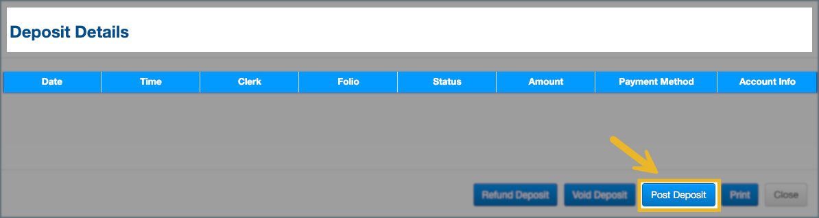 The Deposit Details option not only lets you post a new deposit but also shows a recap of all deposits already entered for the reservation.