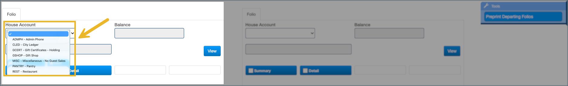 - City Ledger House Accounts: Used for administrative purposes and city ledger postings handled through Accounting. These accounts are restricted. Improper use could create discrepancies in financial reports and accounting balances.