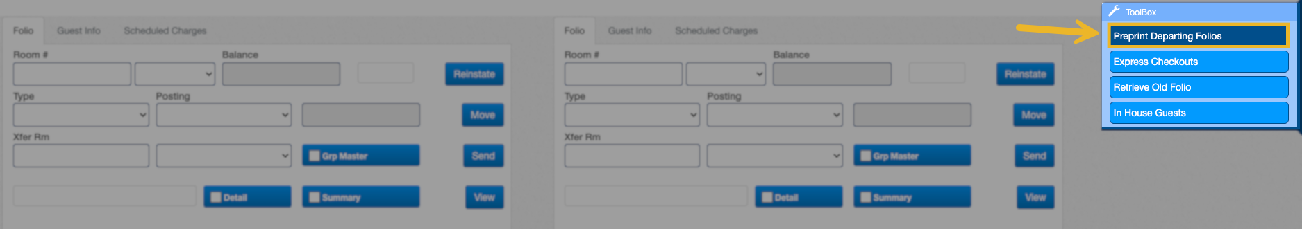 1. From the Toolbox on the right, select Preprint Departing Folios.