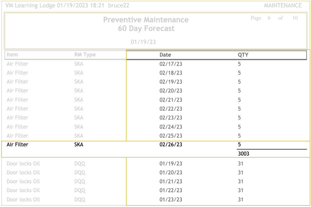 Preventative Maintenance 60 Day Forecast Report (Desktop) 🎥