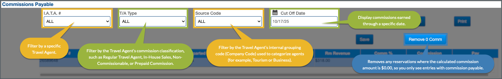 - Remove 0 Comm: Removes any reservations where the calculated commission amount is $0.00, so you only see entries with commission payable.