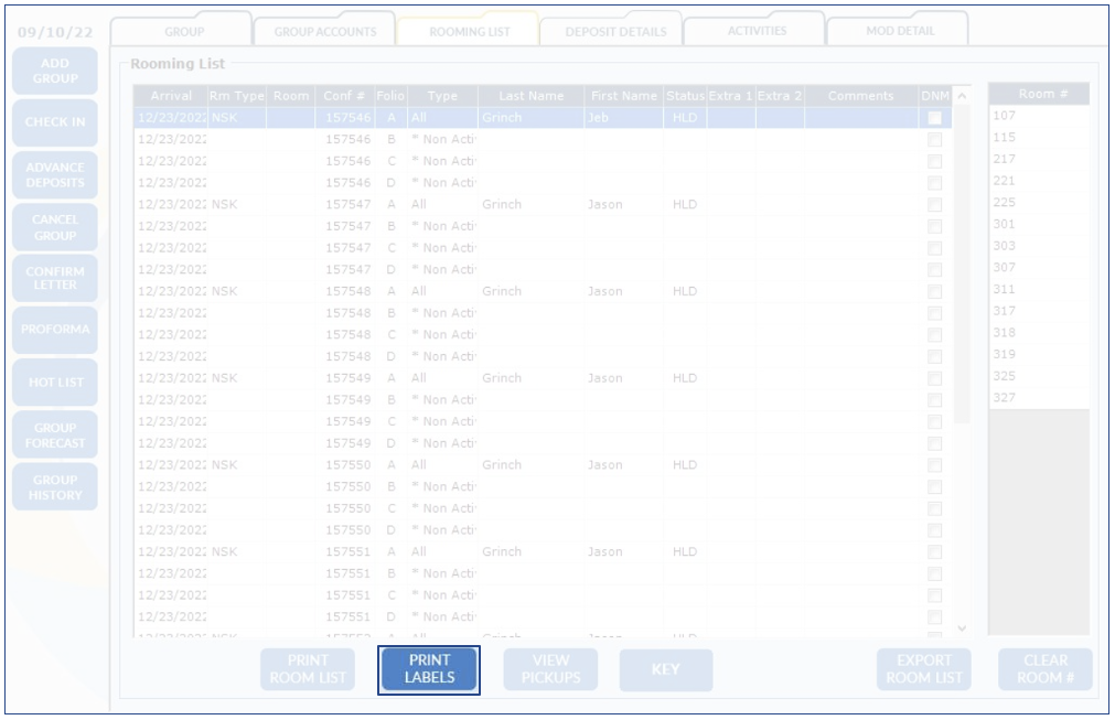 ? Watch Video The rooming list is a convenient tool that gives you an easy way not only to have a big and complete picture of your group but also to update several of the guest information all in one place, like room number and guest(s) names. Path: ...
