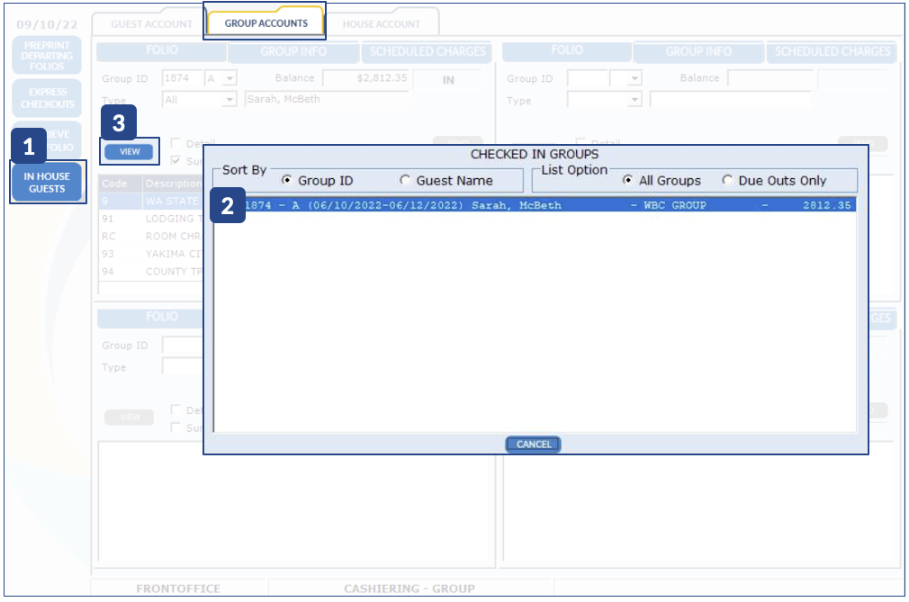 ? Watch Video Path: Front Office > Cashiering > Group Account 1. Click on "Retrieve Old Folio" from the left side. 2. There are 2 search options: by group ID or by group name. 3. [Optional] Add any additional detail about the name or the ID in the ...