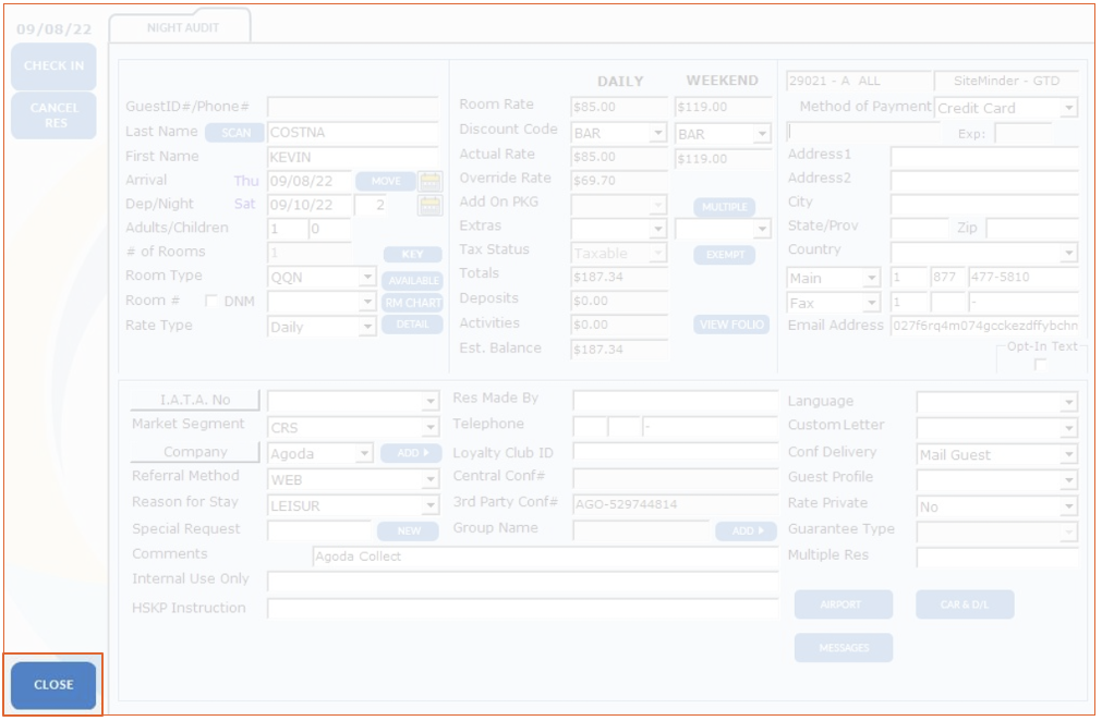 4. Double click on the guest name to open the reservation.