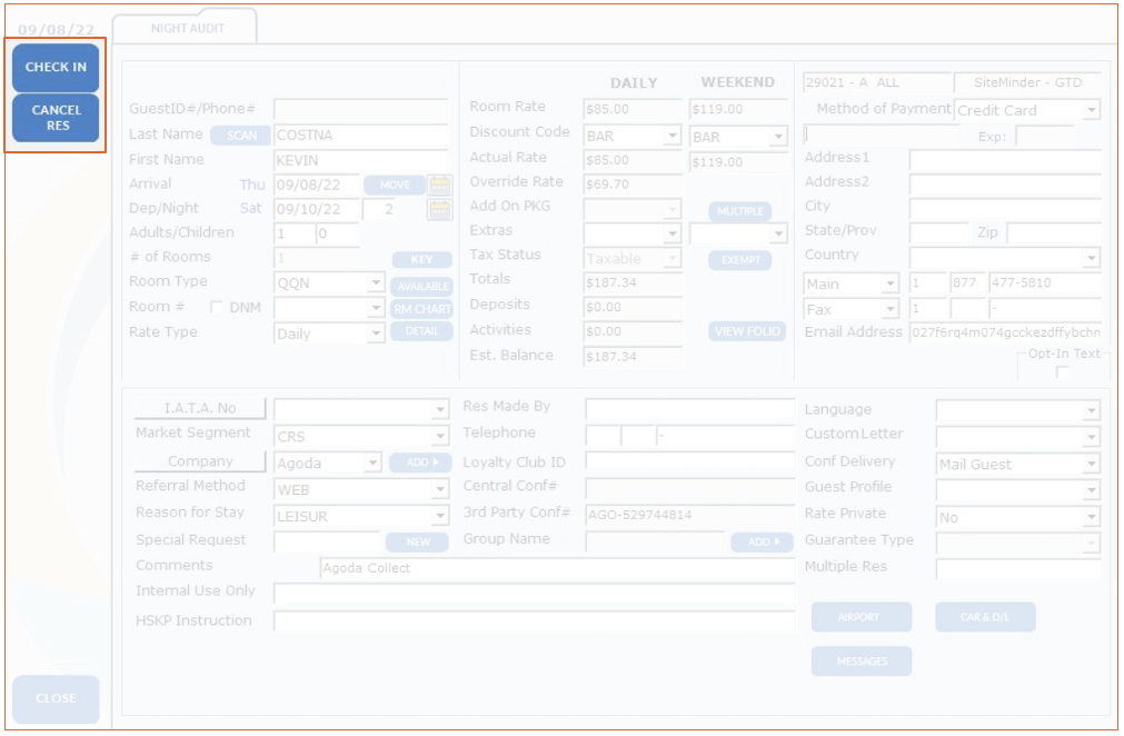 5. On the left, choose to cancel or check-in the reservation as a no-show.