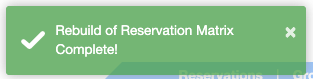 3. When the process finishes, a green banner appears at the top of the screen indicating: â Rebuild of Reservation Matrix Complete!