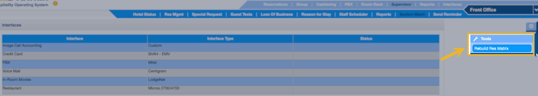 The Res Matrix is the internal database that tracks every room and its status. The Availability screen uses this information to show totals for each room type and for overall inventory.