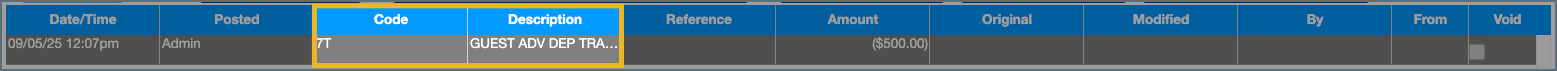 1. Confirm the Advance Deposit: Verify that the advance deposit (7T) appears correctly in the folio transactions.