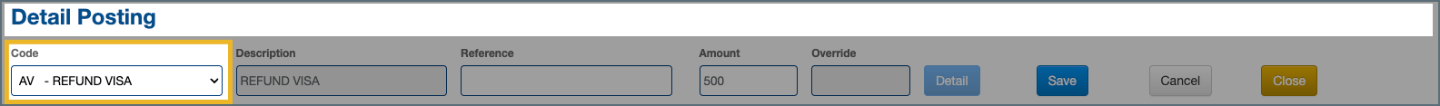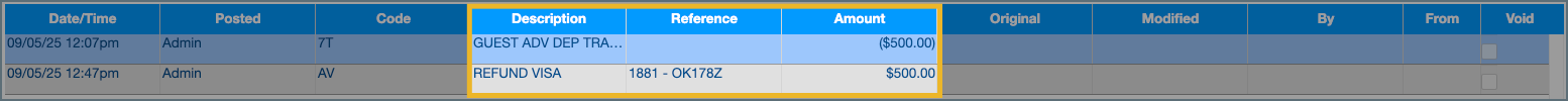 | 7V - Advance Deposit Visa/Mastercard | AV - Refund Visa/Mastercard |