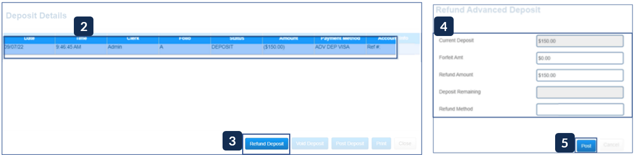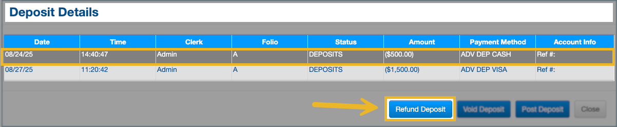 3. Click Refund Deposit to open the refund dialog.