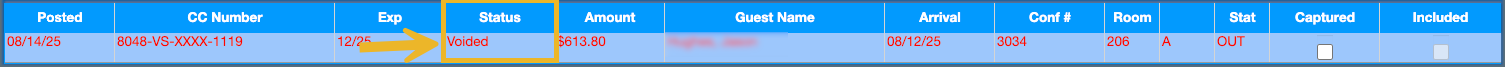 15. The unsettled transaction will now be marked as Voided in the batch. The reposted payment will appear in the current day’s batch.