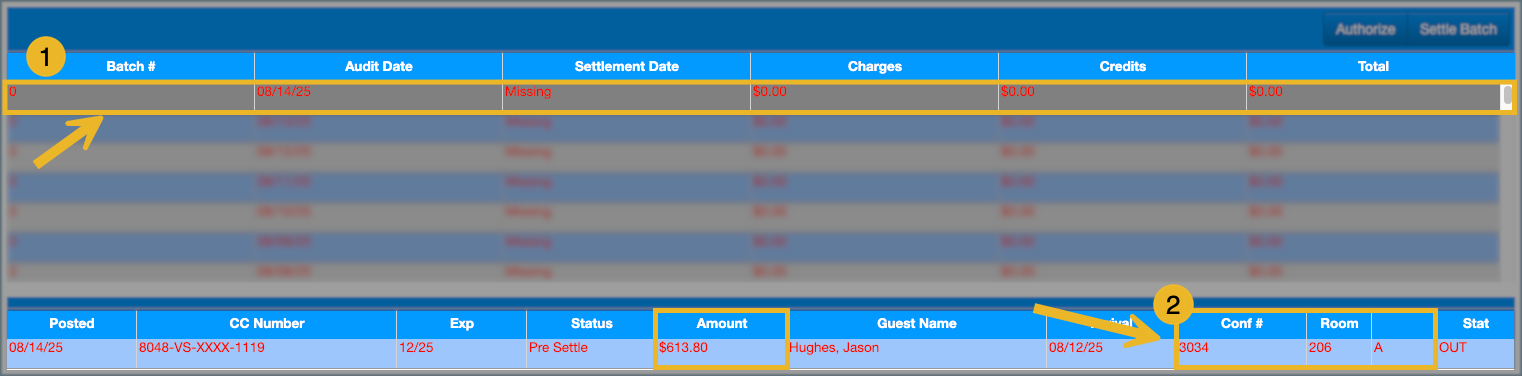 3. Note the confirmation number and folio number — you’ll need these to locate the guest folio and process the repost.
