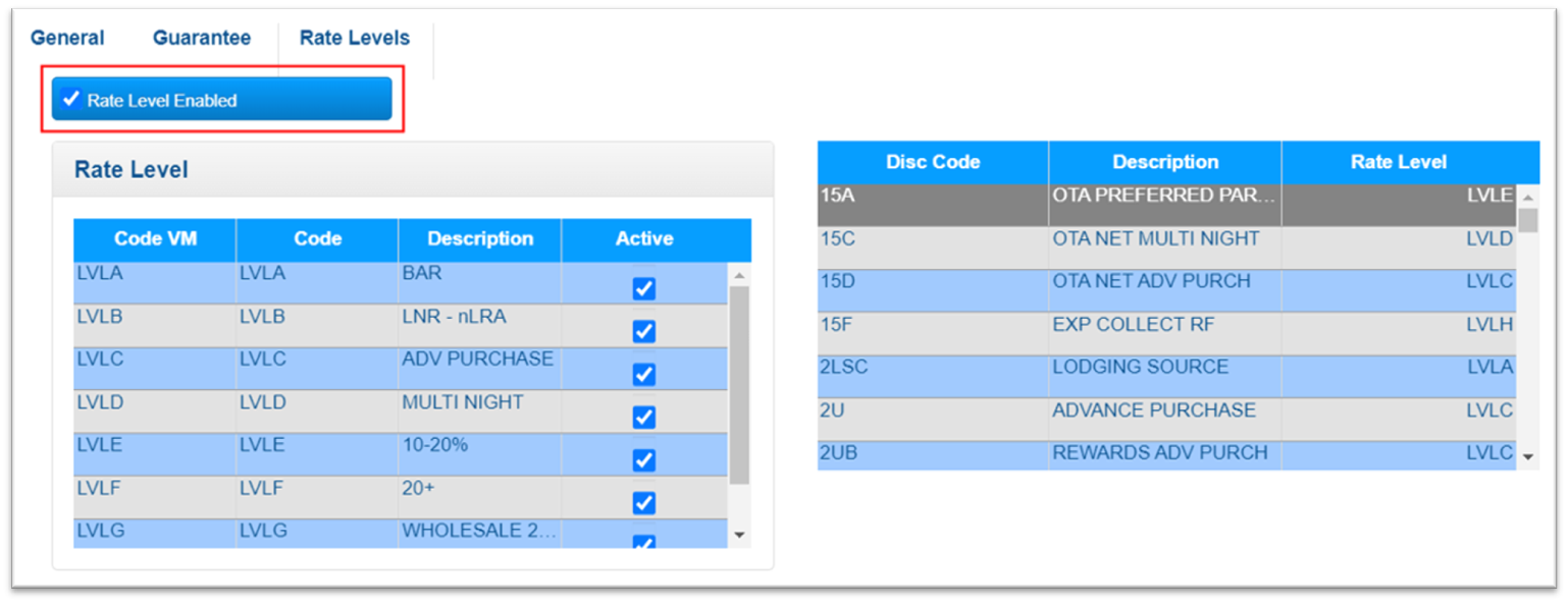 Rate levels control the rate plan management between Visual Matrix and Member Web. If this setting was inadvertently deactivated, reservations will not be pulled down.