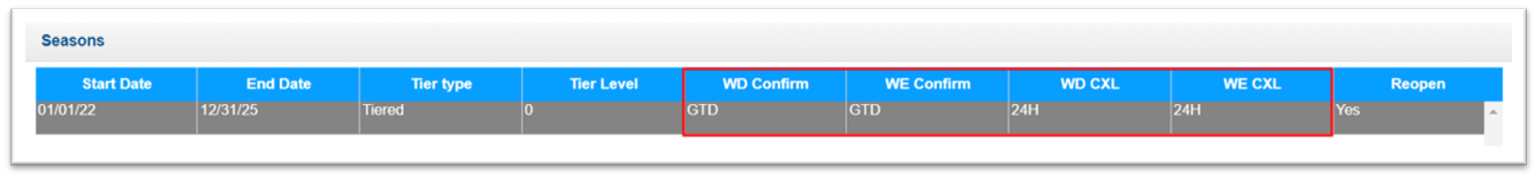 For each season created in Visual Matrix, guaranteed and cancellation policies must be assigned in the BW2Way interface, overriding any local settings in Visual Matrix. If these policies are left blank, the system will not accept or process reservations.