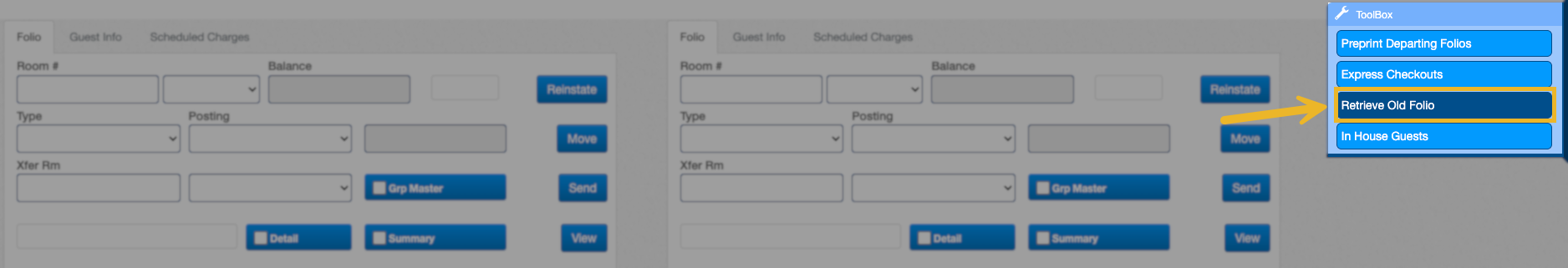 1. From the toolbox in the upper-right, click Retrieve Old Folio.