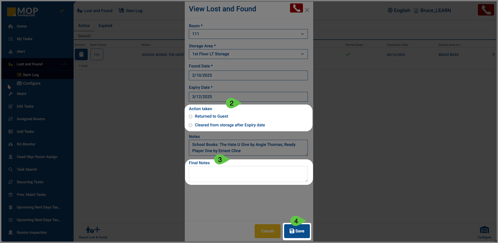 The last step in managing lost and found items is ensuring they are either returned to their rightful owners or cleared from storage once they reach the expiration date. Properly completing this process keeps your storage organized and helps maintain accurate records. In this guide, we'll walk you through how to efficiently return items or remove them when it's time to clear storage.