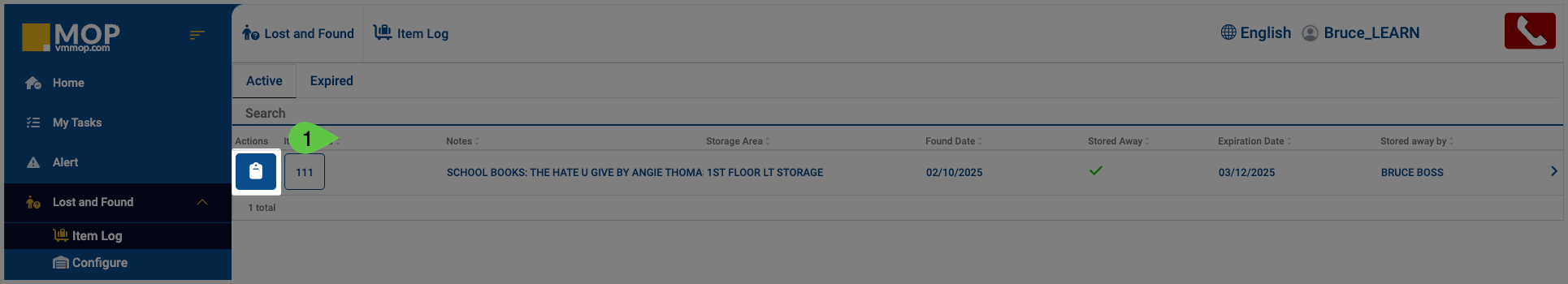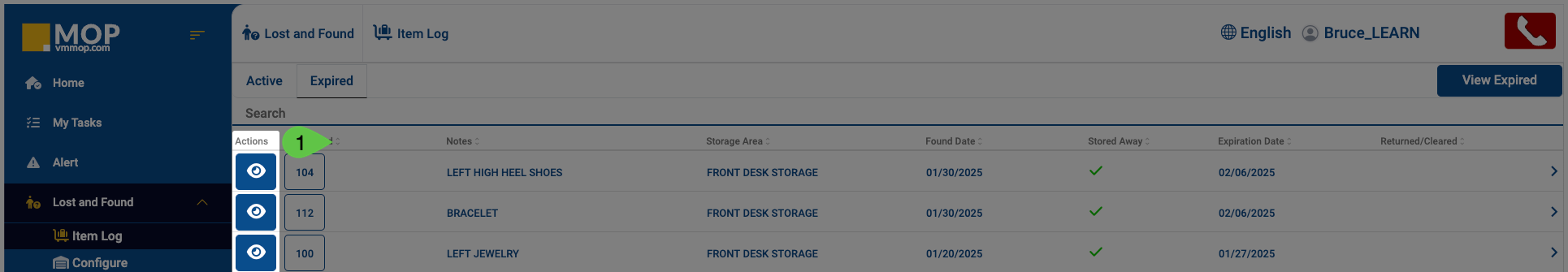 Path2: Lost & Found > Item Log > Expired