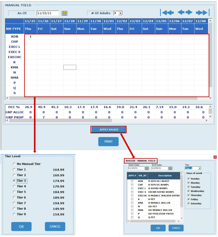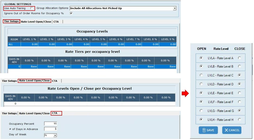 However, this screen does provide users with data that can help them make decisions on what tiers to select. Data such as the current number of rooms sold, group allocations, current revenue, historical data, and more.
