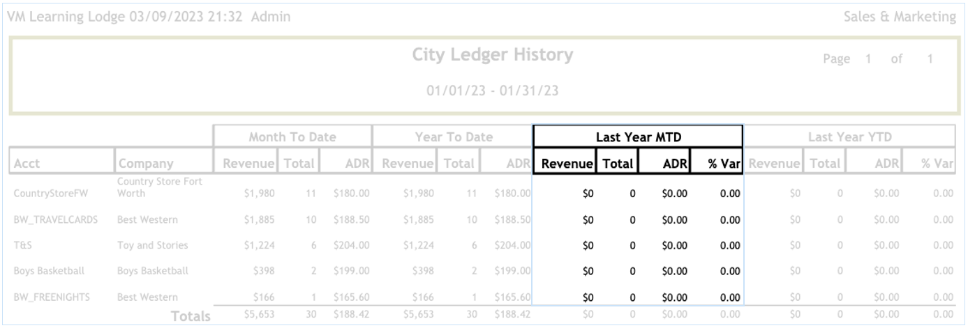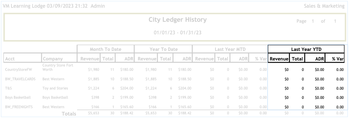 Sales & Mktg City Ledger History Report (Cloud) π₯