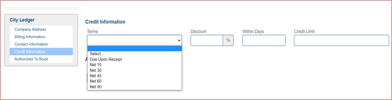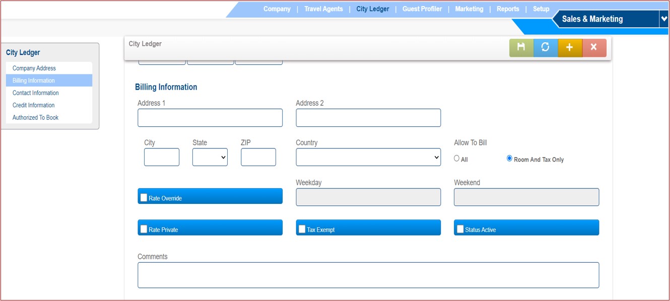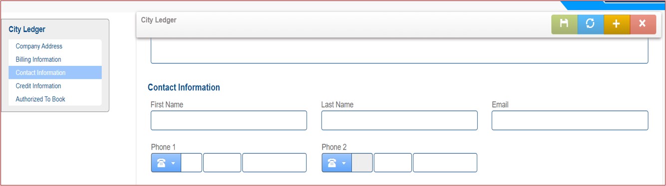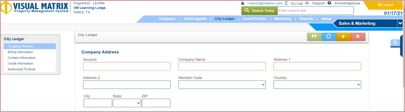 The City Ledger profile in Sales & Marketing is divided into 5 sections: