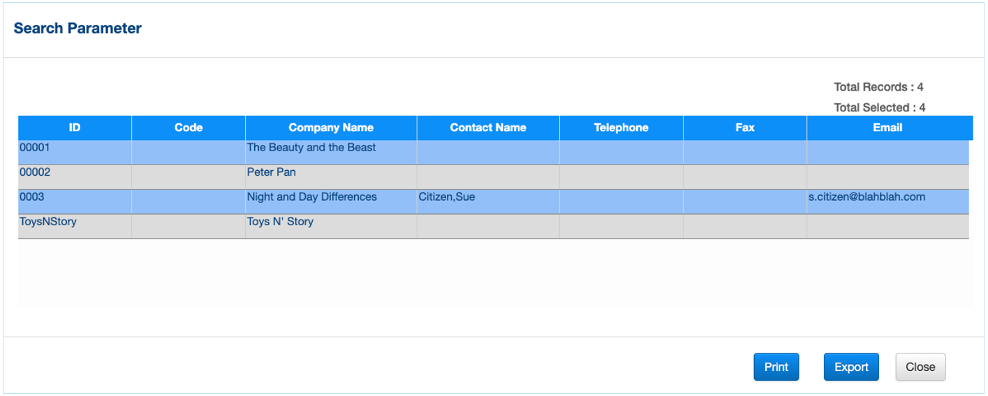 - Contact Last and First Name, Address 1 and 2, City, State, Zip and Country, Telephone, Fax and Email.