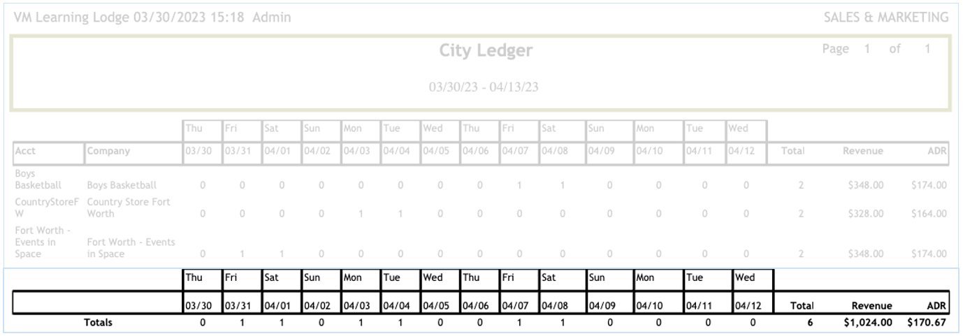 ? Watch Video The Company forecast report will display the number of rooms, revenue and ADR based on Companies reservations currently booked in the system for a period of 2 weeks (14 days). Path: Sales & Marketing > Reports > Forecast > Company ...