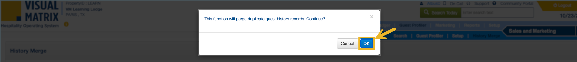 The History Merge tool scans for duplicate guest profiles that have identical information and allows them to be merged into one profile.