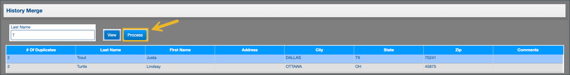 3. Click Process to merge the duplicate profiles.