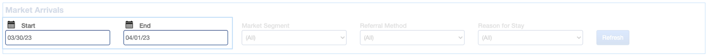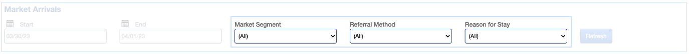 - by marketing segment: choose to get only the arrivals for a specific segment or for all by choosing a Market Segment, a Referral Method and a Reason for Stay.