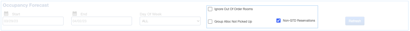 - Number of non-guaranteed group reservations picked up - if the "Non-GTD Reservations" box is not checked (see above), it will show "0".