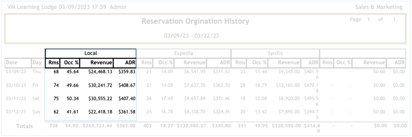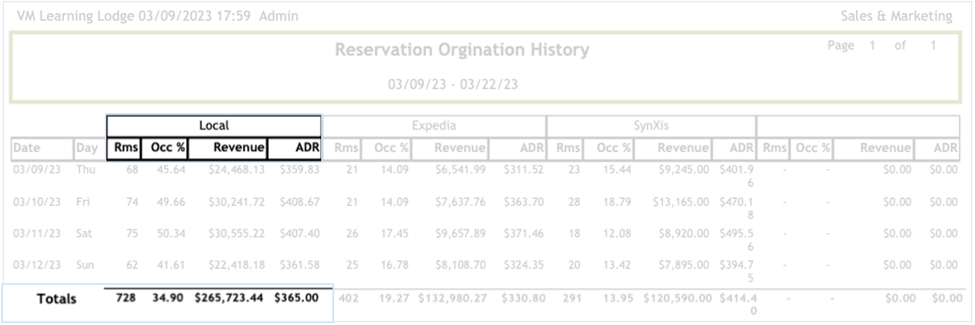 The Reservation Origin History report will show statistics of the origin of reservations between local and channel managers. If you have multiple channel managers, they will each have their own stats.