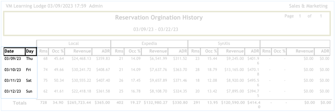 Sales & Mktg Reservation Origin History Report (Desktop) π₯